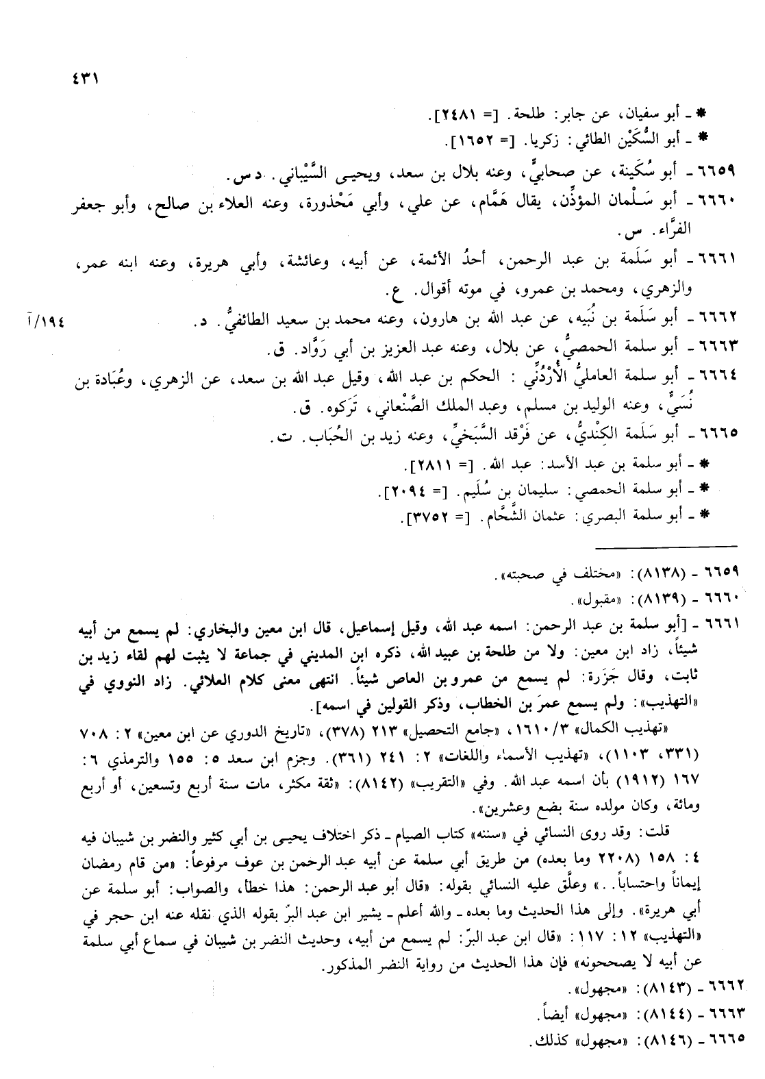6665- أبو سلمة الكندي عن فرقد السبخي وعنه زيد بن الحباب ت أبو سلمة بن عبد الاسد عبد الله ' أبو سلمة بن عبد الاسد عبد الله 2811 أبو سلمة الحمصي سليمان بن سليم ' أبو سلمة الحمصي سليمان بن سليم 2094 أبو سلمة البصري عثمان الشحام أبو سلمة البصري عثمان الشحام 3752
