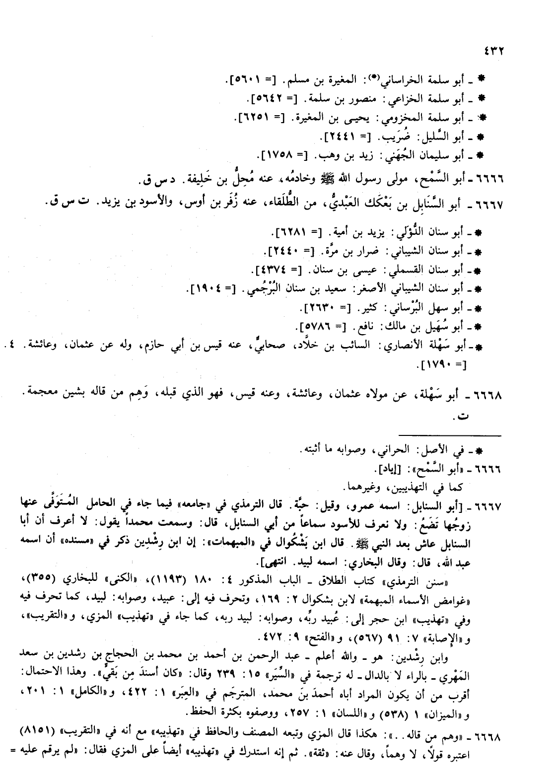 6667- أبو السنابل بن بعكك العبدي من الطلقاء عنه زفر بن أوس والاسود بن يزيد ت س ق أبو سنان الدؤلي يزيد بن أمية أبو سنان الدؤلي يزيد بن أمية 6281 أبو سنان الشيباني ضرار بن مرة أبو سنان الشيباني ضرار بن مرة 244 أبو سنان القسملي عيسى بن سنان أبو سنان القسملي عيسى بن سنان 4374 أبو سنان الشيباني الاصغر سعيد بن سنان البرجمى أبو سنان الشيباني الاصغر سعيد بن سنان البرجمي 1904 أبو سهل البرساني كثير أبو سهل البرساني كثير 263 أبو سهيل بن مالك نافع أبو سهيل بن مالك نافع 5786 أبو سهلة الانصاري السائب بن خلاد صحابي عنه قيس بن بن أبي حازم وله عن عثمان وعائشة 4، 179