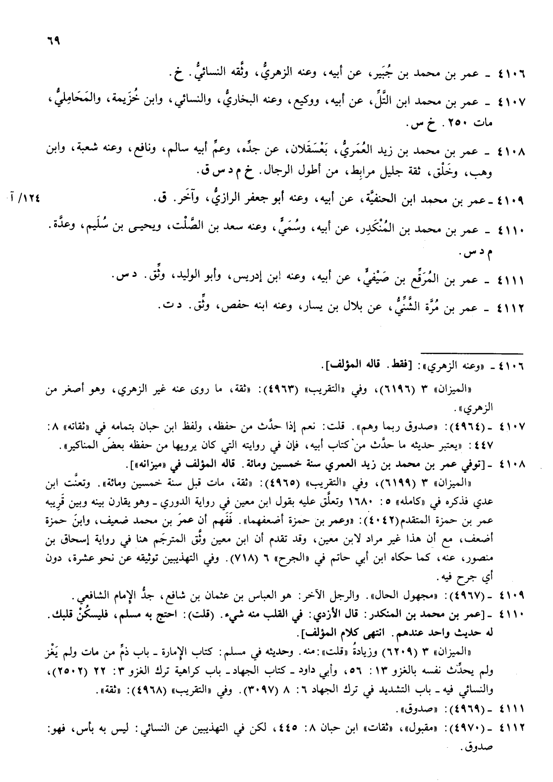 4108- عمر بن محمد بن زيد العمري بعسقلان عن جده وعم أبيه سالم ونافع وعنه شعبة وابن وهب وخلق ثقة جليل مرابط من أطول الرجال خ م د س ق
