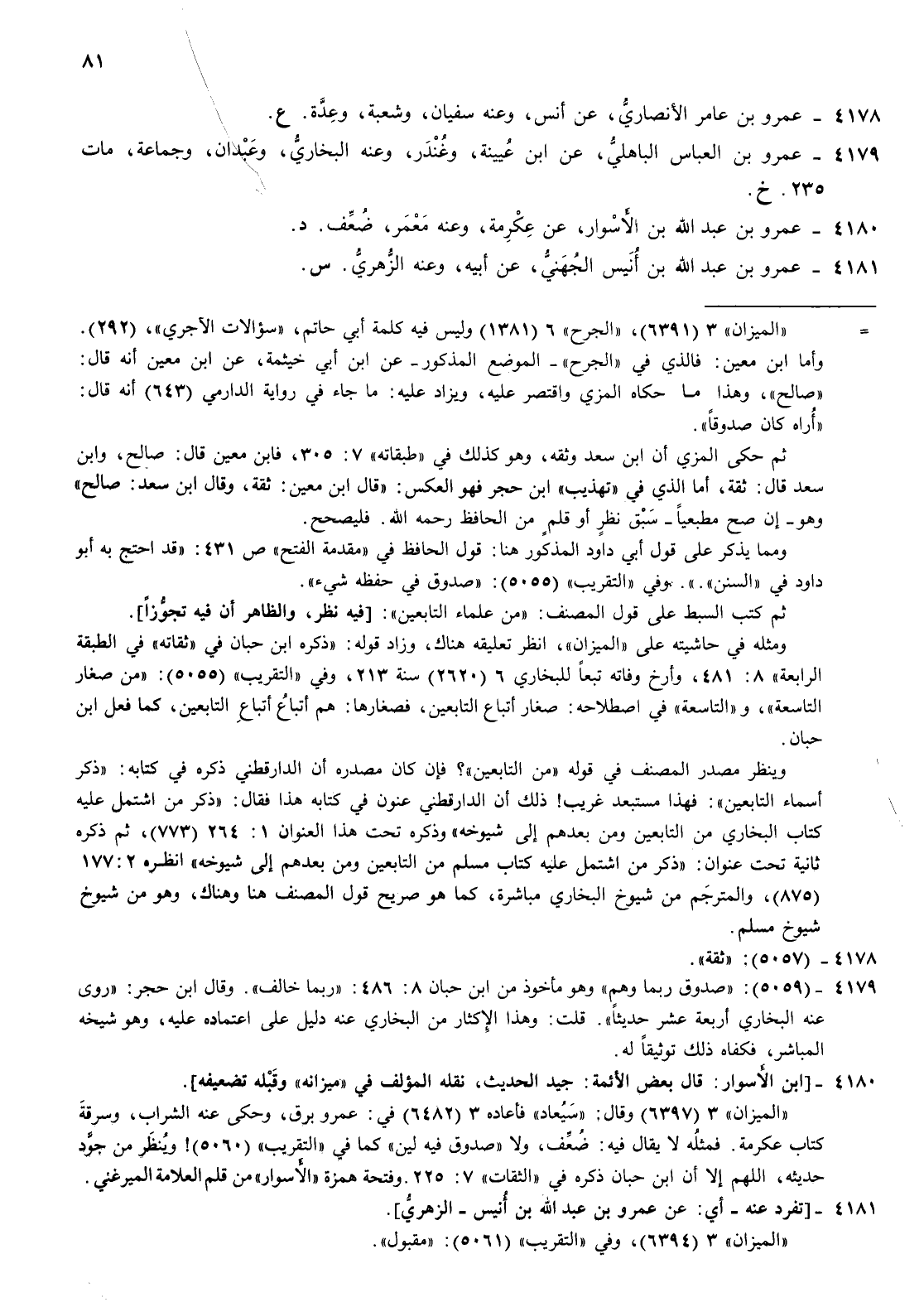 4179- عمرو بن العباس الباهلي عن بن عيينة وغندر وعنه البخاري وعبدان وجماعة مات 235 خ