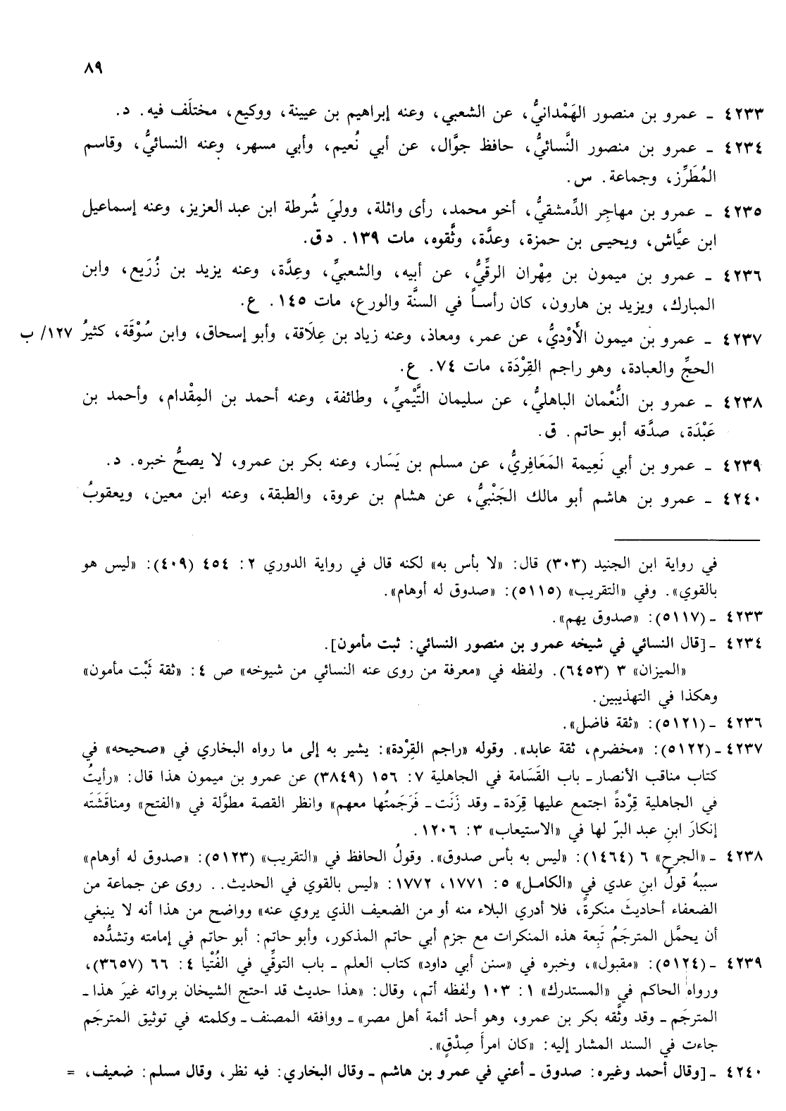 4240- عمرو بن هاشم أبو مالك الجنبي عن هشام بن عروة والطبقة وعنه بن معين ويعقوب
