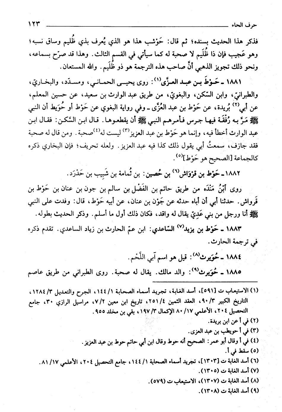 : روى يحيى الحماني، ومسدّد، والبخاريّ، والطبرانيّ، وابن السّكن، والبغويّ، من طريق عبد الوارث بن سعيد، عن حسين المعلم، عن أبي «٢» بريدة، عن حوط بن عبد العزّى- وفي رواية البغوي عن حوط أو حويط أن النبي صلّى اللَّه عليه وسلّم مرّ به رفقة فيها جرس فأمرهم النبي صلّى اللَّه عليه وسلّم أن يقطعوها. قال ابن السّكن: فقال ابن عبد الوارث أخطأ فيه، وإنما هو حوط بن عبد العزيز «٣» ليست له «٤» صحبة. ومن قال له صحبة فقد جازف، سمعت أبي يقول ذلك كذا فيه عبد العزيز. ولعله تحريف، فإن البخاري ذكره كالجماعة [الصحيح هو حوط]