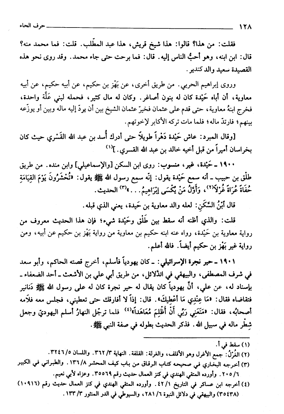 روى ابن السكن [والإسماعيلي] وابن مندة. من طريق طلق بن حبيب- أنه سمع حيدة يقول: إنّه سمع رسول اللَّه صلّى اللَّه عليه وسلّم يقول: «تحشرون يوم القيامة حفاة عراة غرلا «٢» ، وأوّل من يكسى إبراهيم ... »