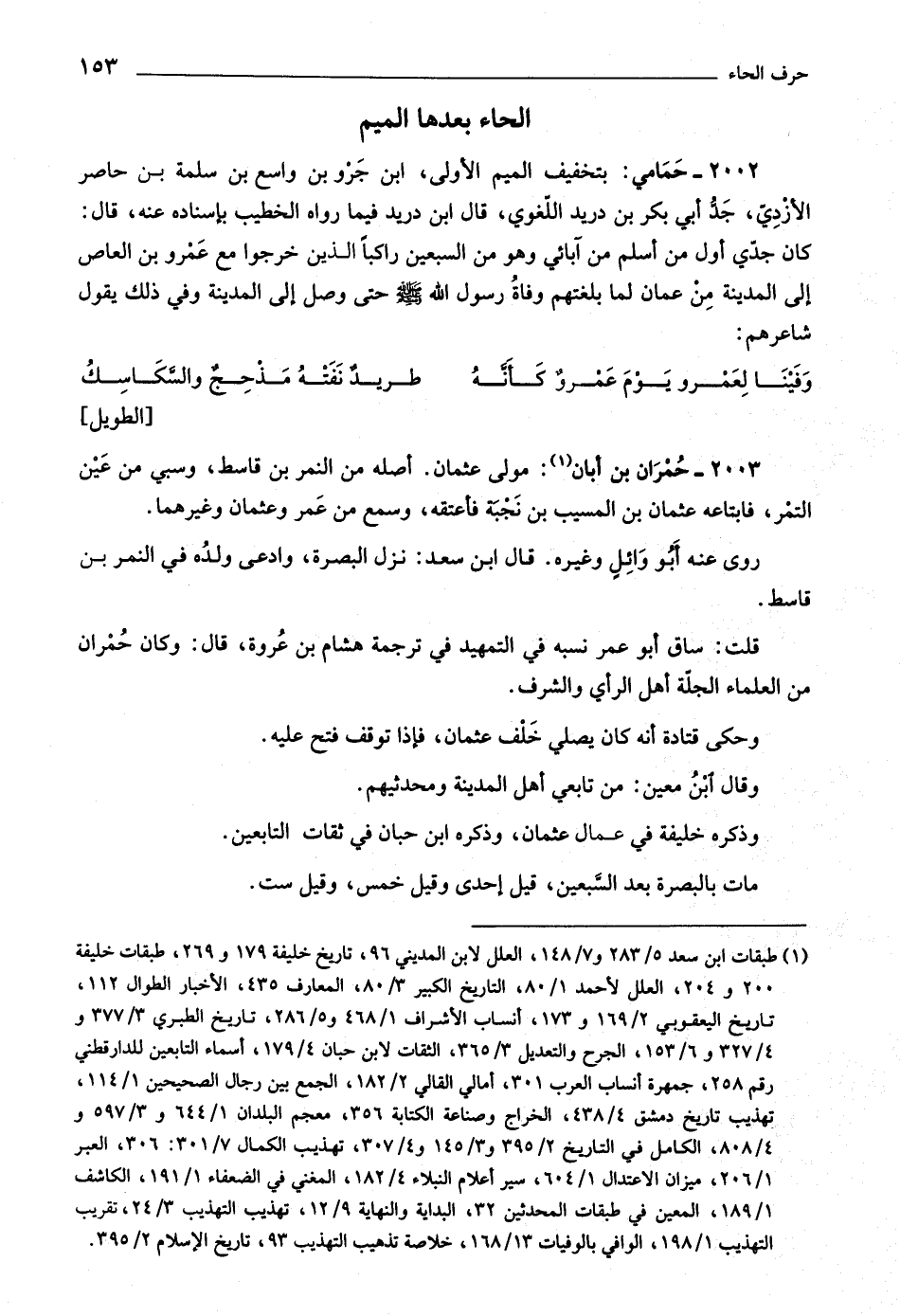 قلت: ساق أبو عمر نسبه في التمهيد في ترجمة هشام بن عروة، قال: وكان حمران من العلماء الجلّة أهل الرأي والشرف.