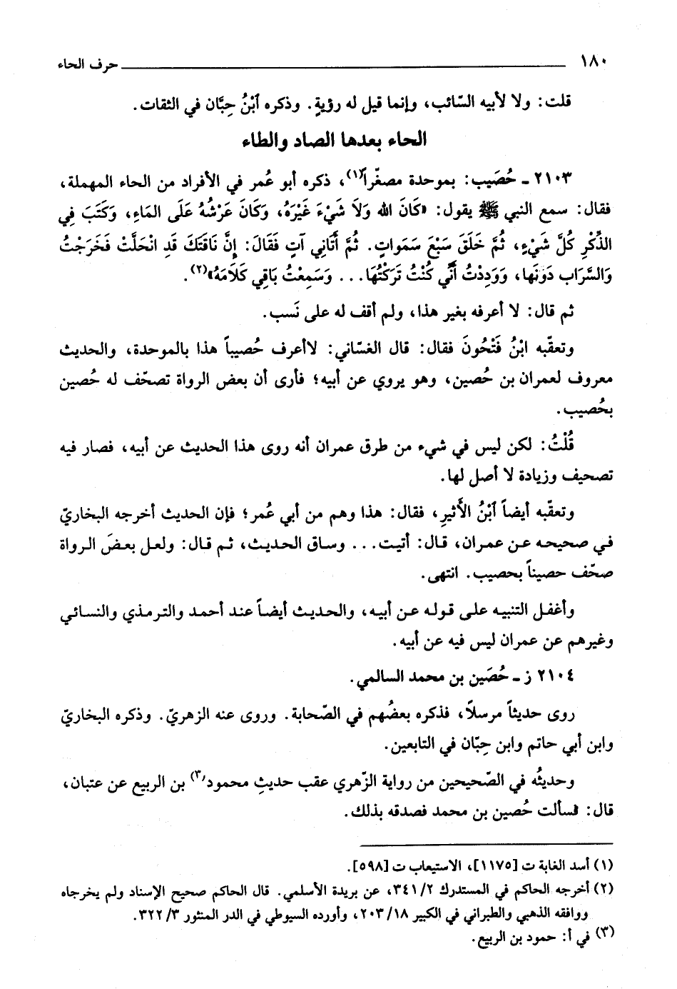 وتعقّبه ابن فتحون فقال: قال الغسّاني: لا أعرف حصيبا هذا بالموحدة، والحديث معروف لعمران بن حصين، وهو يروي عن أبيه، فأرى أن بعض الرواة تصحّف له حصين بحصيب.