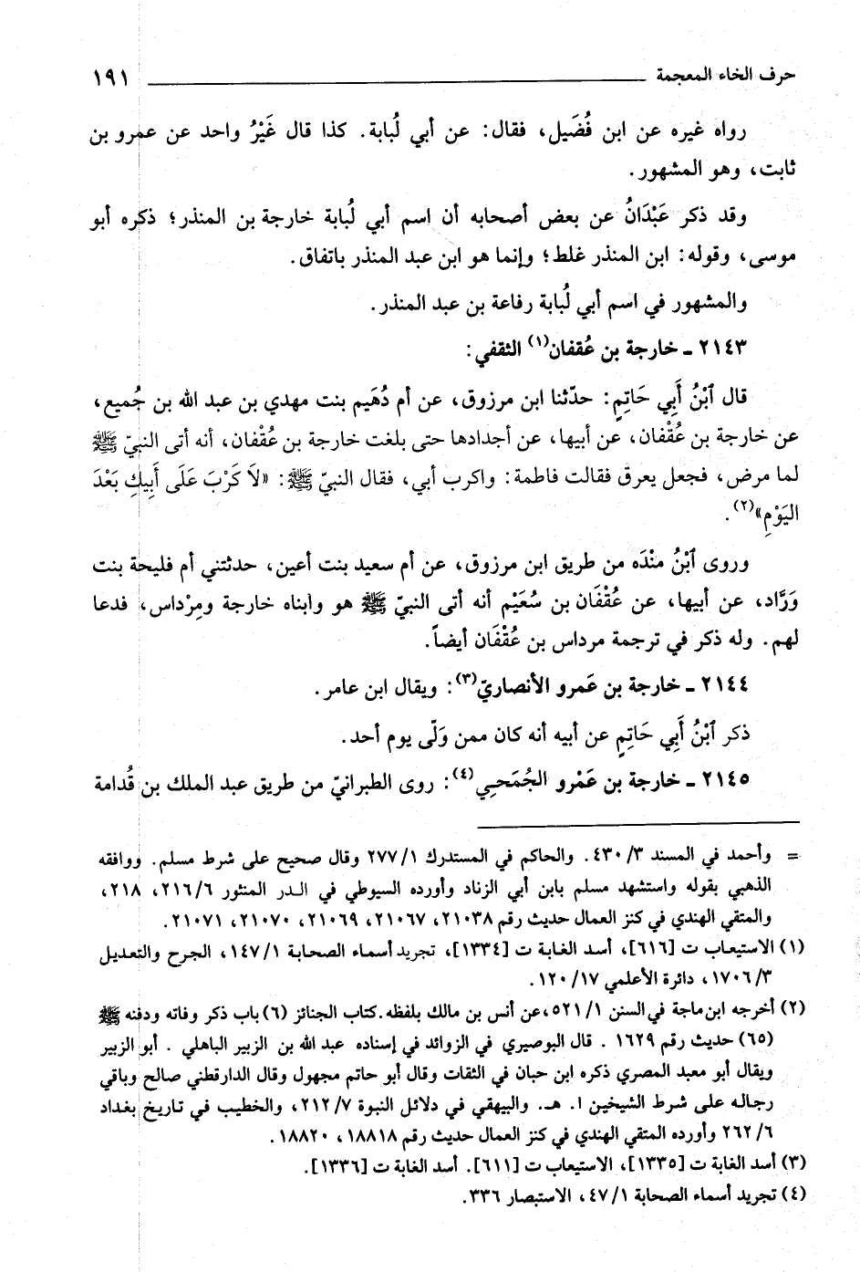(٣) أسد الغابة ت [١٣٣٥] ، الاستيعاب ت [٦١١] . أسد الغابة ت [١٣٣٦] .