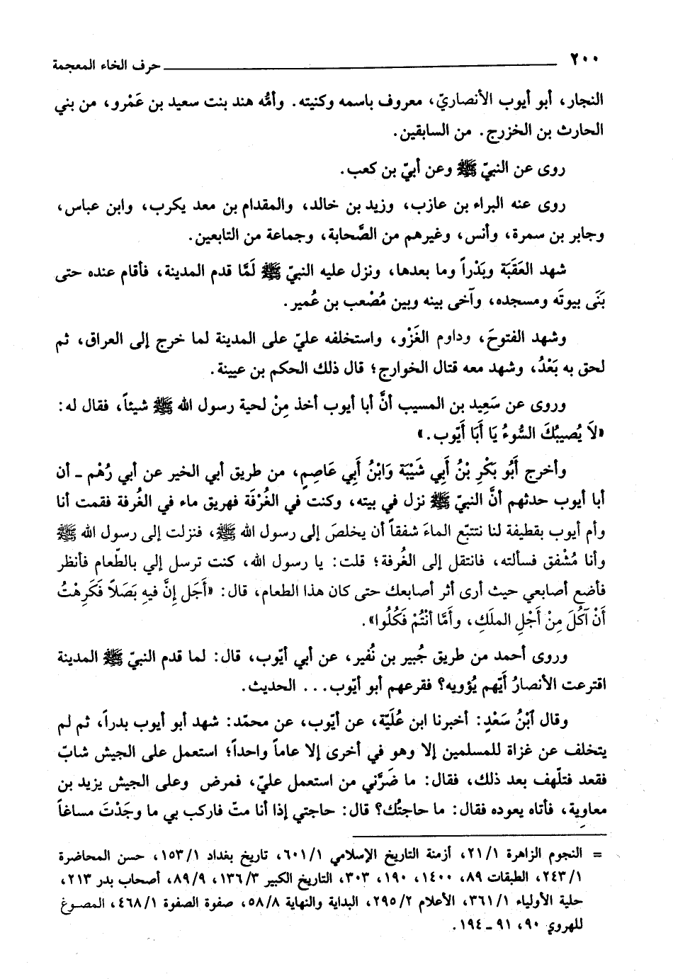 النجار، أبو أيوب الأنصاريّ، معروف باسمه وكنيته. وأمّه هند بنت سعيد بن عمرو، من بني الحارث بن الخزرج. من السابقين.