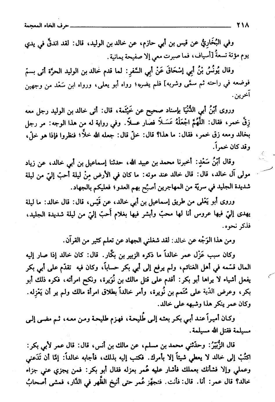 وفي البخاريّ عن قيس بن أبي حازم، عن خالد بن الوليد، قال: لقد اندقّ في يدي يوم مؤتة تسعة [أسياف، فما صبرت معي إلا صفيحة يمانية.