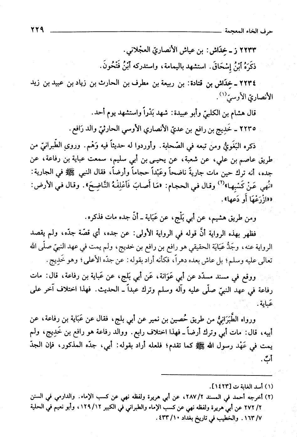 ٢٢٣٥- خديج بن رافع بن عديّ الأنصاري الأوسي الحارثيّ والد رافع.