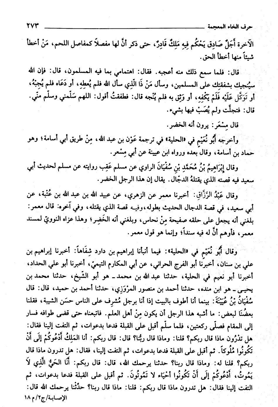 وقال إبراهيم بن محمّد بن سفيان الراويّ عن مسلم عقب روايته عن مسلم لحديث أبي سعيد فيه قصته الّذي يقتله الدجّال. يقال إن هذا الرجل الخضر.