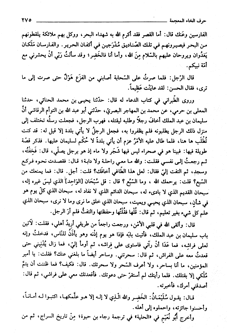 وأخرج أبو نعيم في «الحلية» في ترجمة رجاء بن حيوة، من تاريخ السراج، ثم من