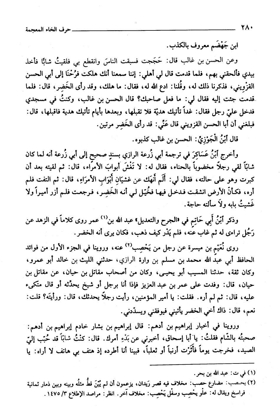 وأخرج ابن عساكر في ترجمة أبي زرعة الرازيّ بسند صحيح إلى أبي زرعة أنه لما كان شابّا لقي رجلا مخضوبا بالحناء، فقال له: لا تغش أبواب الأمراء، قال: ثم لقيته بعد أن كبرت وهو على حالته، فقال لي: ألم أنهك عن غشيان أبواب الأمراء، قال: ثم التفت فلم أره، فكأنّ الأرض انشقت فدخل فيها فخيّل لي أنه الخضر، فرجعت فلم أزر أميرا ولا غشيت بابه ولا سألته حاجة.