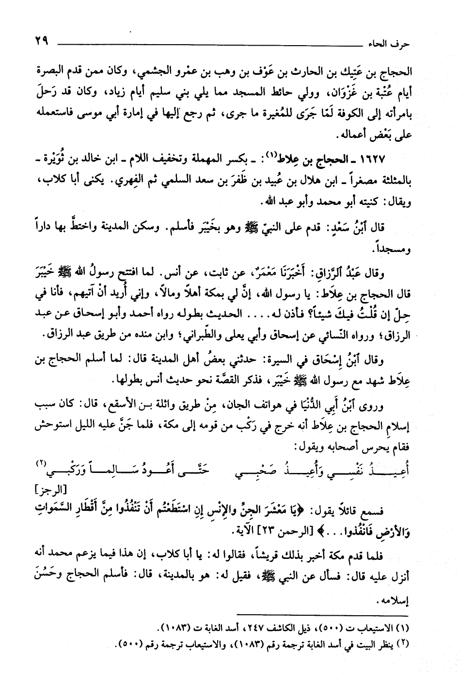 فلما قدم مكة أخبر بذلك قريشا، فقالوا له: يا أبا كلاب، إن هذا فيما يزعم محمد أنه أنزل عليه قال: فسأل عن النبي صلّى اللَّه عليه وسلّم، فقيل له: هو بالمدينة، قال: فأسلم الحجاج وحسن إسلامه.