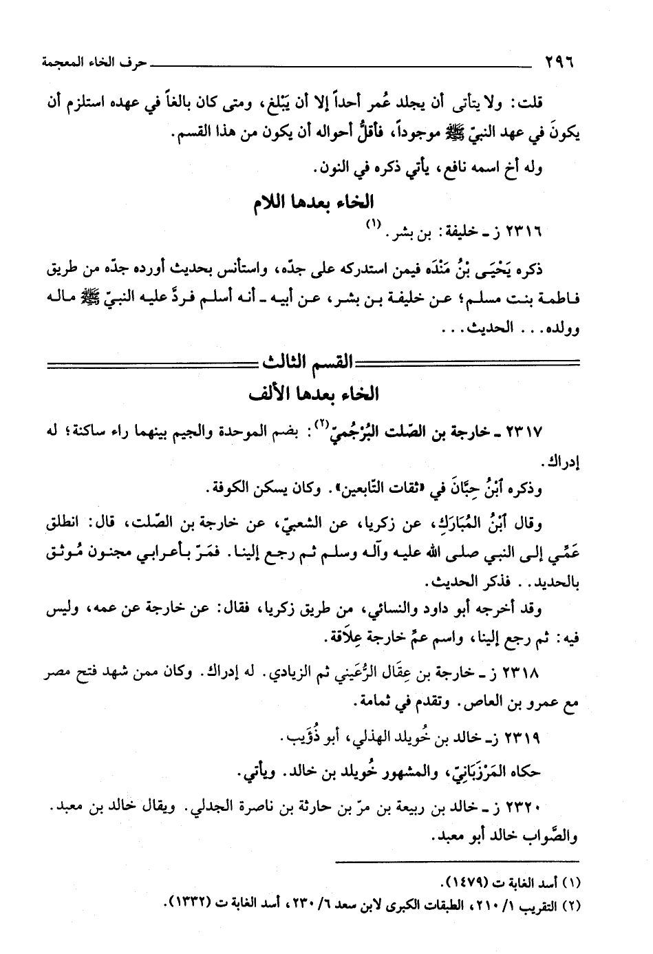 (٢) التقريب ١/ ٢١٠، الطبقات الكبرى لابن سعد ٦/ ٢٣٠، أسد الغابة ت (١٣٣٢) .