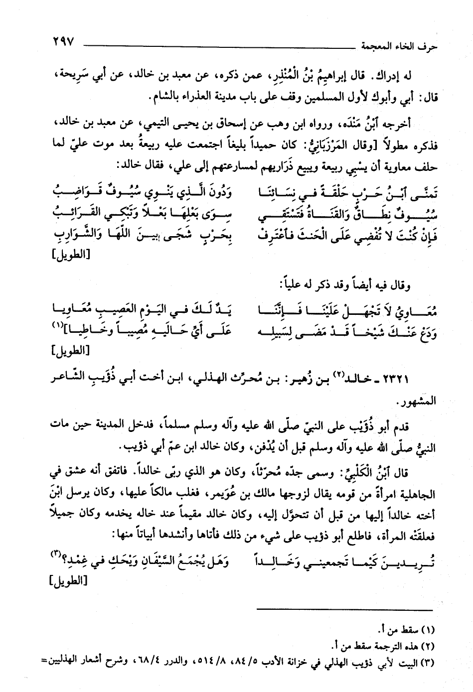 قدم أبو ذؤيب على النبيّ صلّى اللَّه عليه وآله وسلم مسلما، فدخل المدينة حين مات النبيّ صلّى اللَّه عليه وآله وسلم قبل أن يدفن، وكان خالد ابن عمّ أبي ذؤيب.
