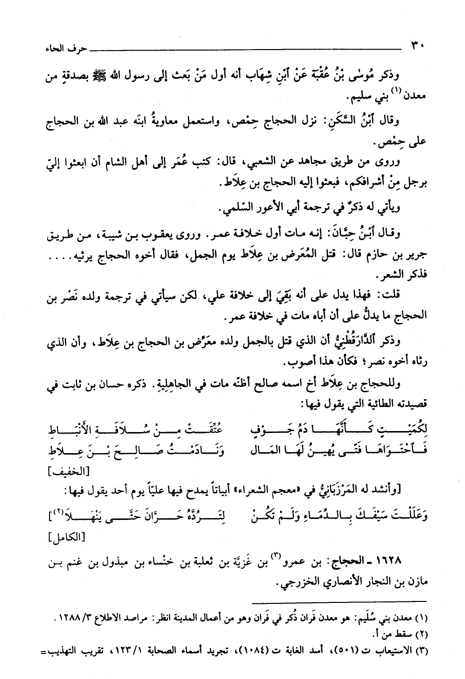 وذكر الدّارقطنيّ أن الّذي قتل بالجمل ولده معرّض بن الحجاج بن علاط، وأن الّذي رثاه أخوه نصر، فكأن هذا أصوب.