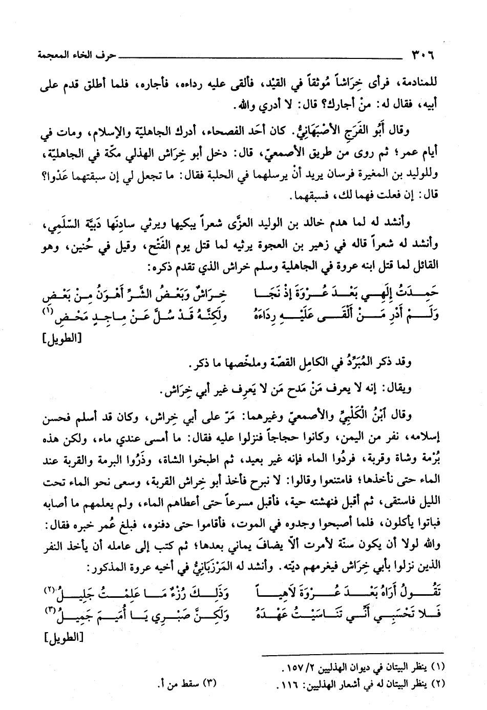 (١) ينظر البيتان في ديوان الهذليين ٢/ ١٥٧.