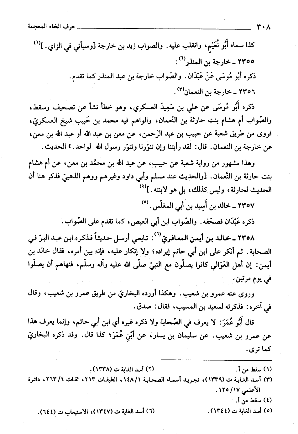 . ذكره أبو موسى عن علي بن سعيد العسكري، وهو خطأ نشأ عن تصحيف وسقط، والصّواب أم هشام بنت حارثة بن النّعمان، والواهم فيه محمد بن حبيب شيخ العسكريّ، فروى من طريق شعبة عن حبيب بن عبد الرحمن، عن معن بن عبد اللَّه أو عبد اللَّه بن معن، عن خارجة بن النعمان. قال: لقد رأيتنا وإن تنوّرنا وتنوّر رسول اللَّه لواحد.» الحديث.