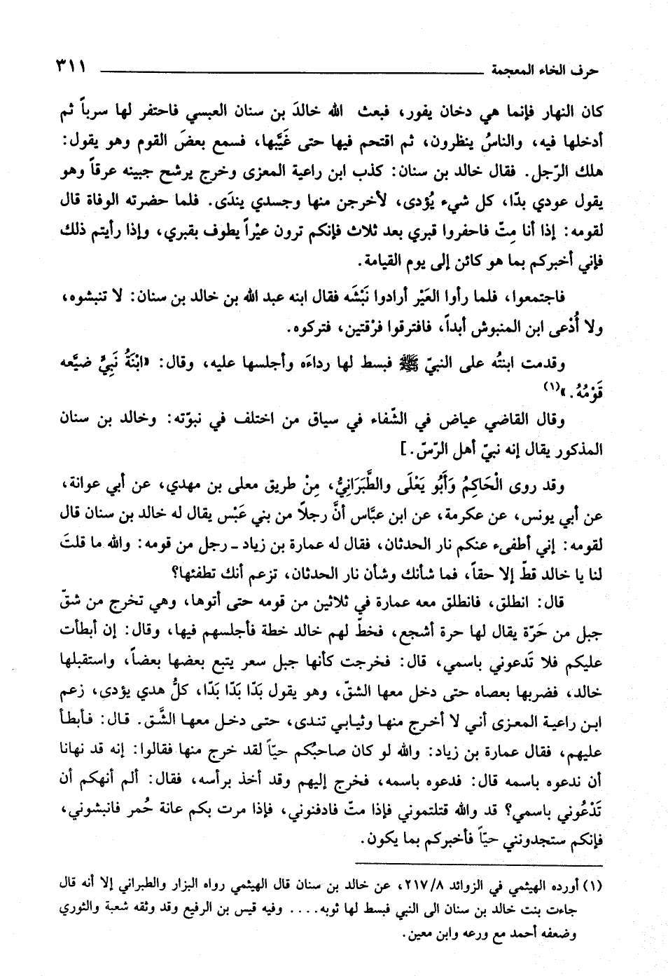 «١» وقال القاضي عياض في الشّفاء في سياق من اختلف في نبوّته: وخالد بن سنان المذكور يقال إنه نبيّ أهل الرّسّ.]