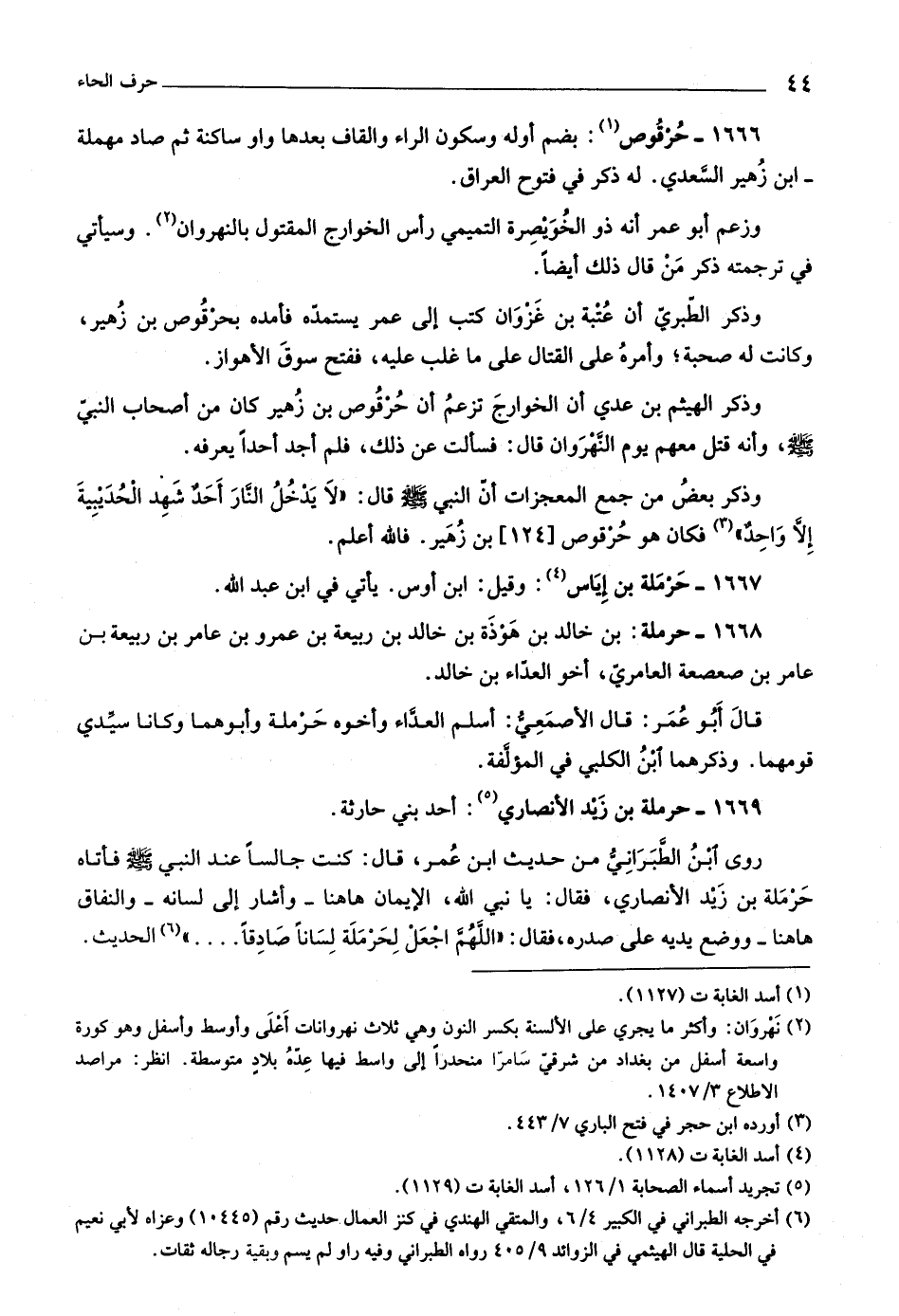 وذكر الهيثم بن عدي أن الخوارج تزعم أن حرقوص بن زهير كان من أصحاب النبيّ صلّى اللَّه عليه وسلّم، وأنه قتل معهم يوم النّهروان قال: فسألت عن ذلك، فلم أجد أحدا يعرفه.