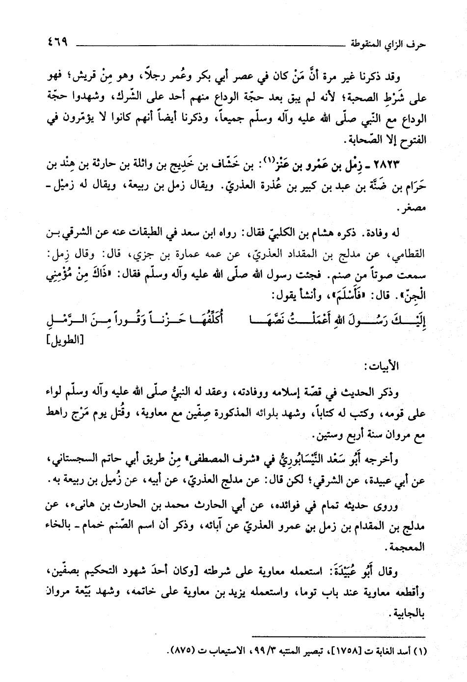 (١) أسد الغابة ت [١٧٥٨] ، تبصير المنتبه ٣/ ٩٩، الاستيعاب ت (٨٧٥) .