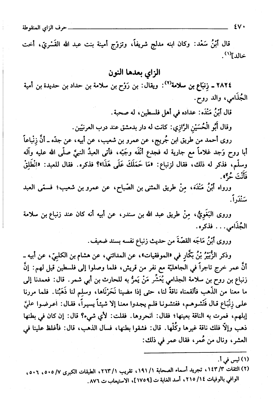 وروى ابن ماجة القصّة من حديث زنباع نفسه بسند ضعيف.