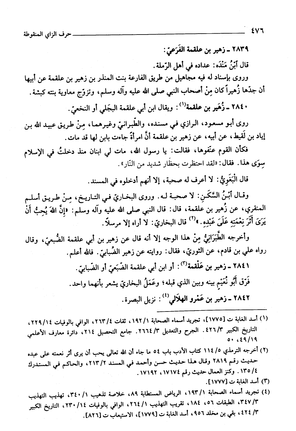 ٢٨٣٩- زهير بن علقمة الفرعيّ:
