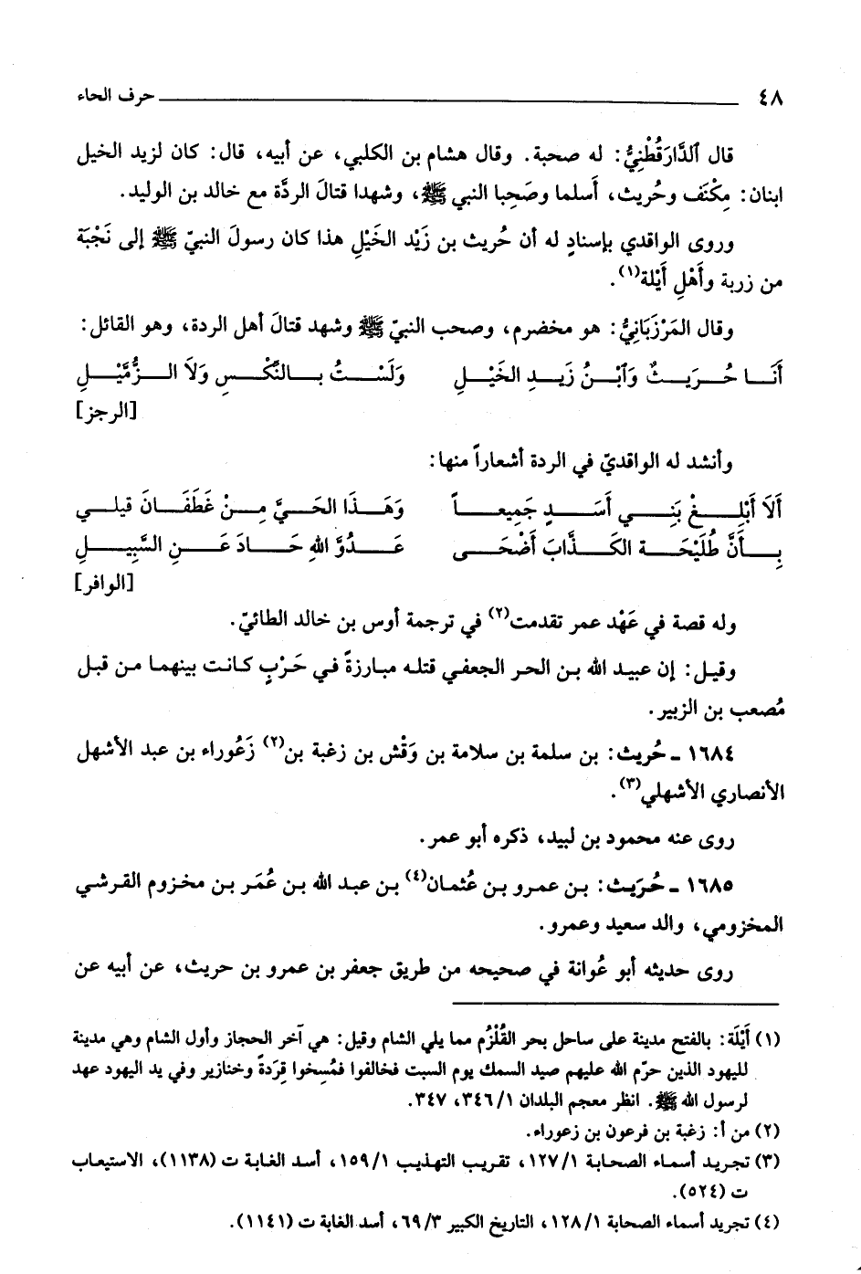 وروى الواقدي بإسناد له أن حريث بن زيد الخيل هذا كان رسول النبيّ صلّى اللَّه عليه وسلّم إلى نجبة من زربة وأهل أيلة «١» .