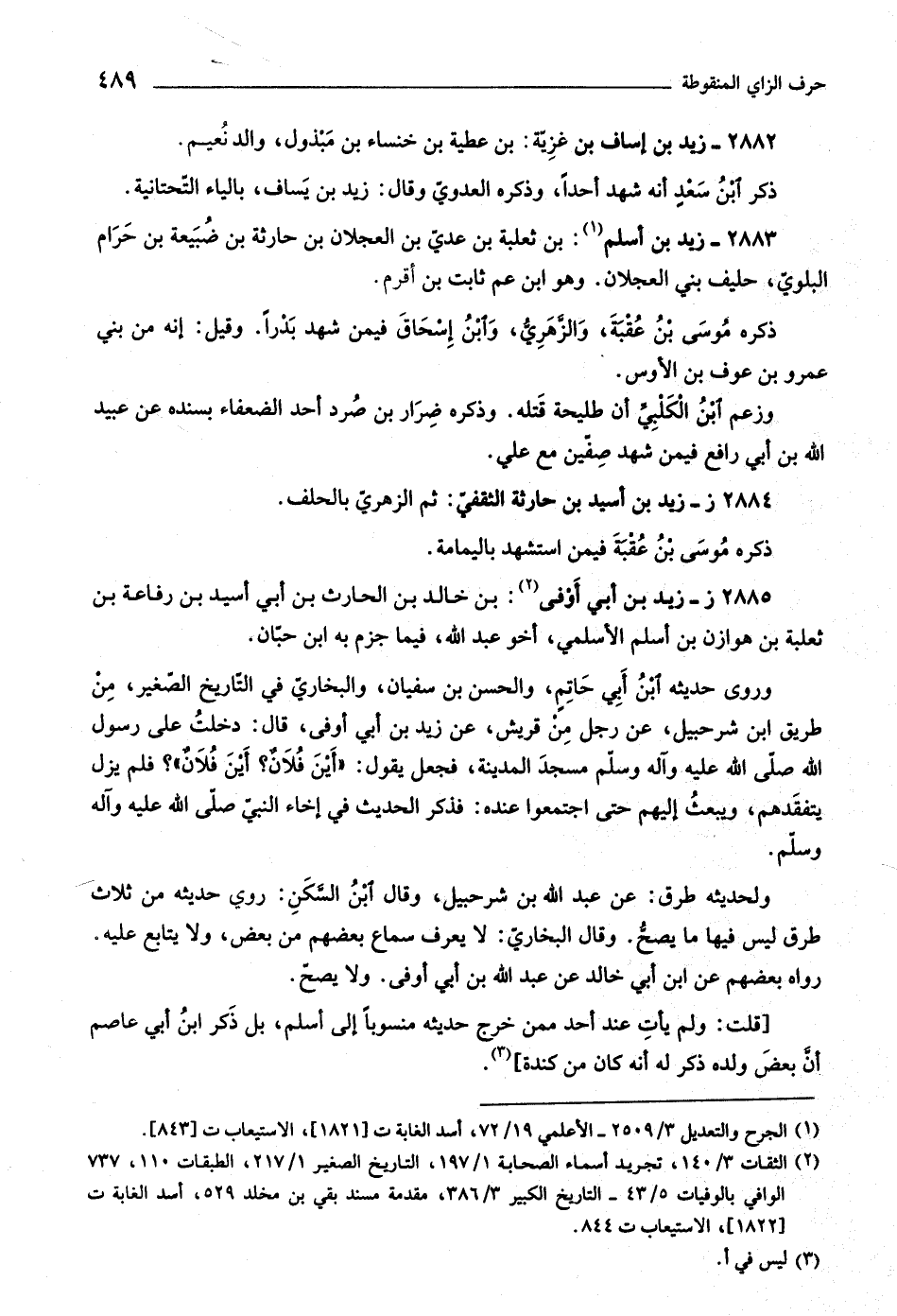 ٢٨٨٤ ز- زيد بن أسيد بن حارثة الثقفيّ: