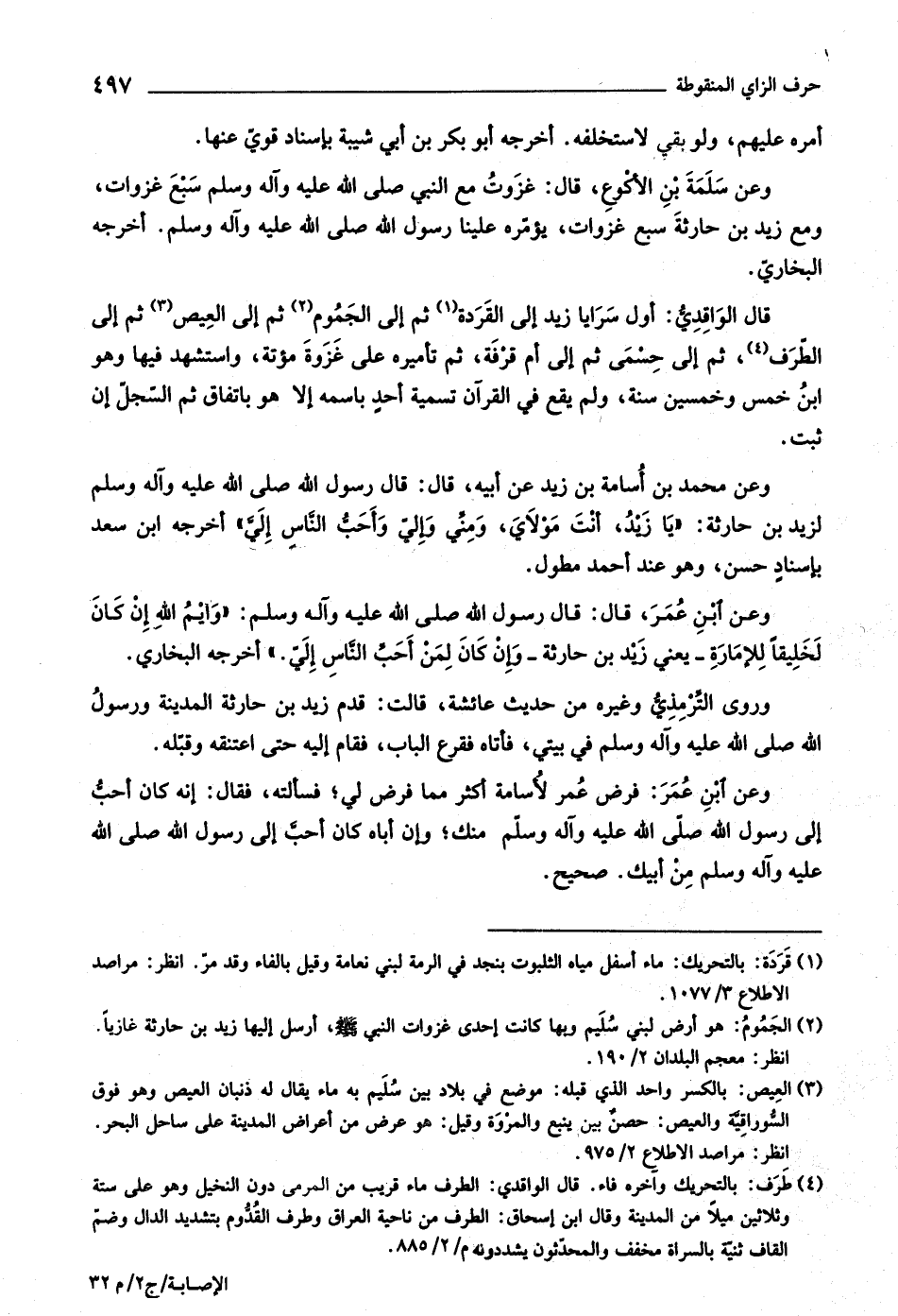 وعن سلمة بن الأكوع، قال: غزوت مع النبي صلى اللَّه عليه وآله وسلم سبع غزوات، ومع زيد بن حارثة سبع غزوات، يؤمّره علينا رسول اللَّه صلى اللَّه عليه وآله وسلم. أخرجه البخاريّ.