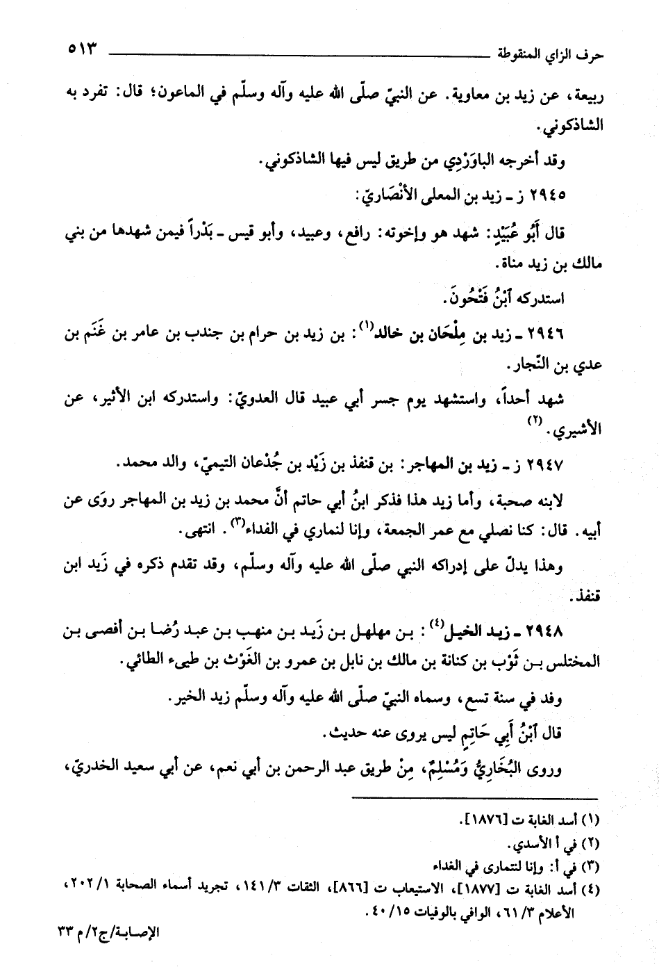٢٩٤٥ ز- زيد بن المعلى الأنصاريّ:
