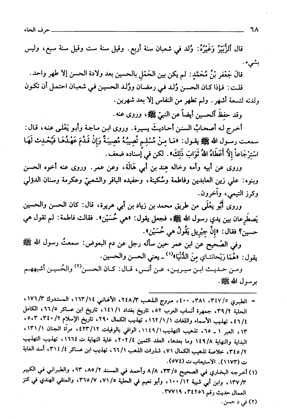 ومن حديث ابن سيرين، عن أنس، قال: كان الحسن «٢» والحسين أشبههم برسول اللَّه صلّى اللَّه عليه وسلّم.