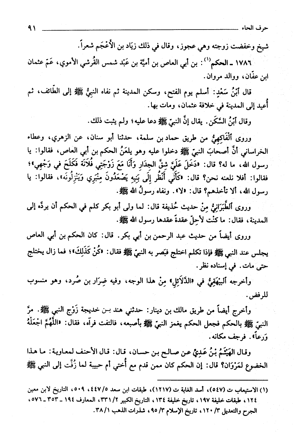 وأخرج أيضا من طريق مالك بن دينار: حدثني هند بن خديجة زوج النبي صلّى اللَّه عليه وسلّم. مرّ النبيّ صلّى اللَّه عليه وسلّم بالحكم فجعل الحكم يغمز النبيّ صلّى اللَّه عليه وسلّم بإصبعه، فالتفت فرآه، فقال: «اللَّهمّ اجعله ورعا» . فرجف مكانه.