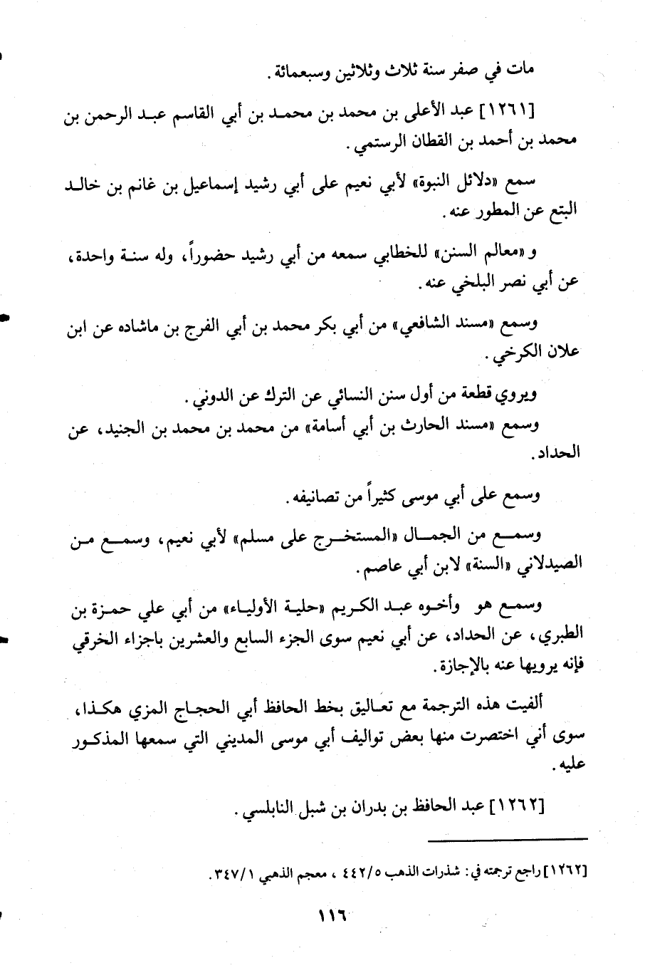 1261- عبد الأعلى بن محمد بن محمد بن أبي القاسم عبد الرحمن بن محمد بن أحمد بن القطان الرستمي. سمع دلائل النبوة لأبي نعيم على ابي رشيد إسماعيل بن غانم بن خالد البتع عن المطور عنه.