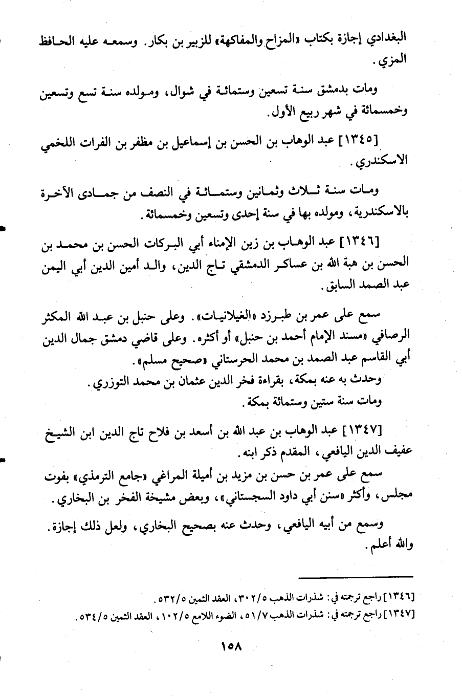 1346- عبد الوهاب بن زين الإمناء ابي البركات الحسن بن محمد بن الحسن بن هبة الله بن عساكر الدمشقي تاج الدين والد امين الدين أبي اليمن عبد الصمد السابق.