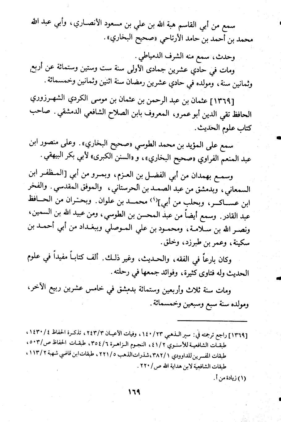 1369- عثمان بن عبد الرحمن بن عثمان بن موسى الكردي الشهرزوري الحافظ تقي الدين أبو عمرو المعروف بابن الصلاح الشافعي الدمشقي صاحب كتاب علوم الحديث.