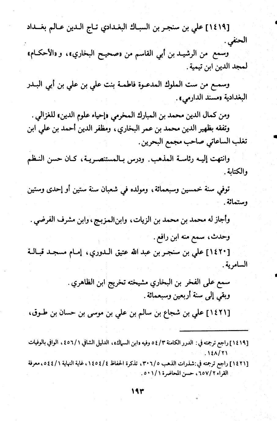 1419- علي بن سنجر بن السباك البغدادي تاج الدين عالم بغداد الحنفي.