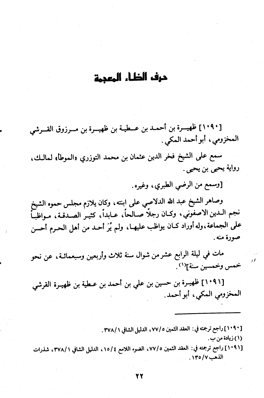 1091 ظهيرة بن حسين بن علي بن أحمد بن عطية بن ظهيرة القرشي المخزومي المكي أبو أحمد.