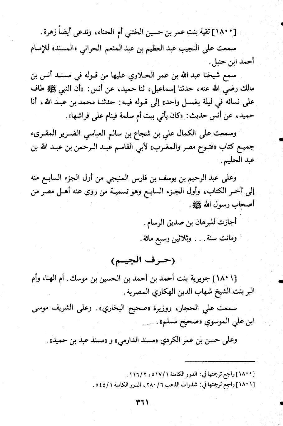 1801- جويرية بنت أحمد بن أحمد بن الحسين بن موسك أم الهناء وأم البر بنت الشيخ شهاب الدين الهكاري المصرية.