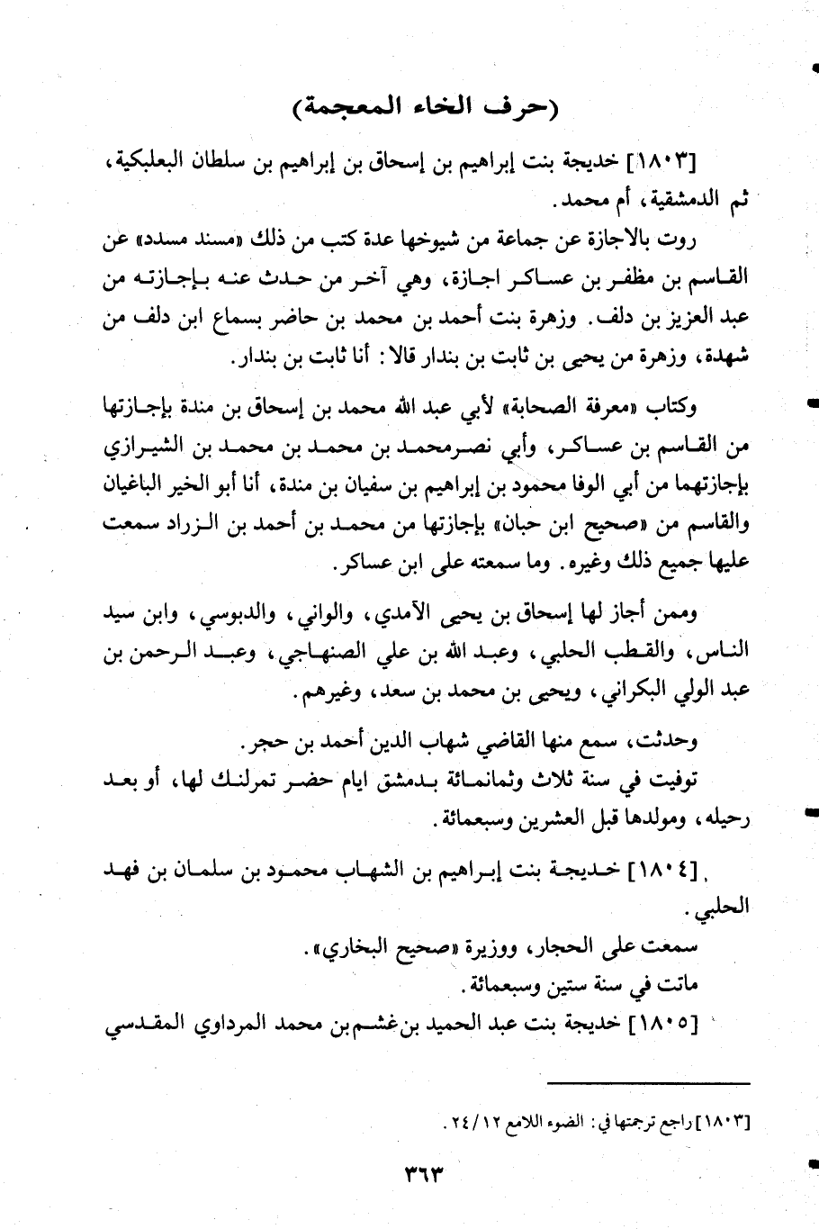 1803- خديجة بنت إبراهيم بن إسحاق بن إبراهيم بن سلطان البعلبكية ثم الدمشقية أم محمد.