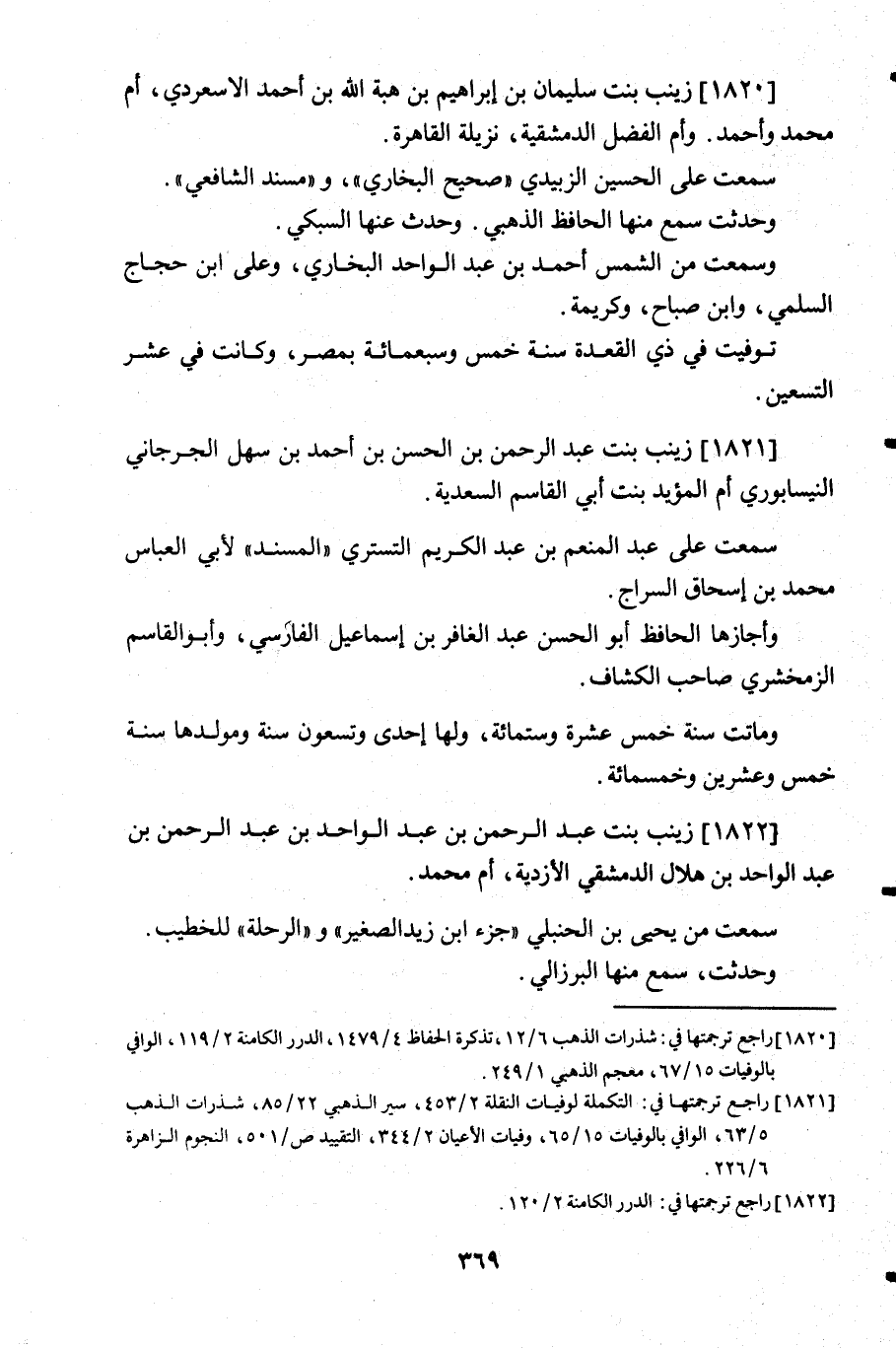 1820- راجع ترجمتها في شذرات الذهب 6/12, تذكرة الحفاظ 4/1479, الدرر الكامنة 2/119, الوافي بالوفيات 15/67, معجم الذهبي 1/249.