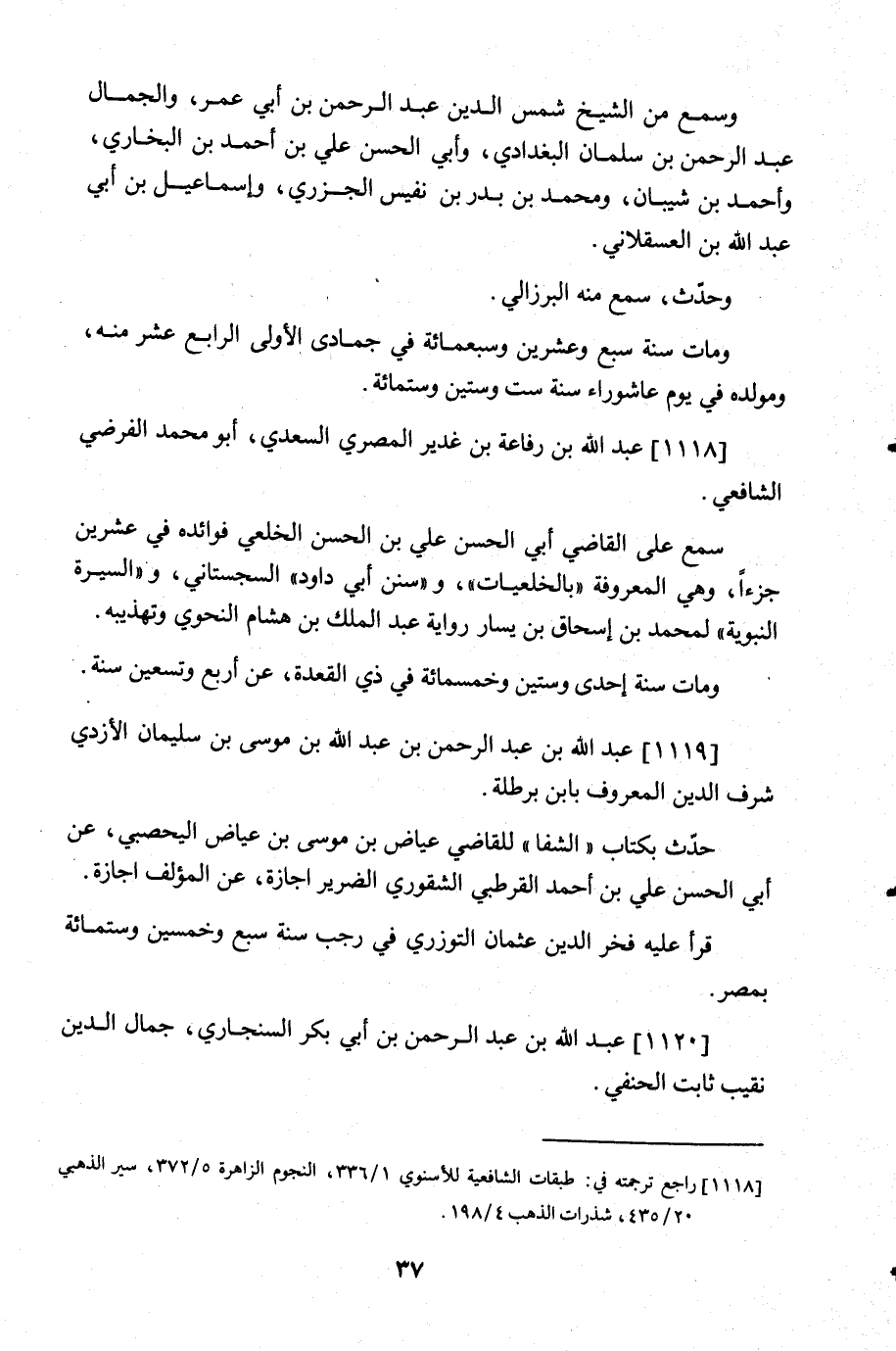 1118- راجع ترجمته في: طبقات الشافعية للأسنوي 1/336، النجوم الزاهرة 5/372، سير الذهبي 20/435، شذرات الذهب 4/198.