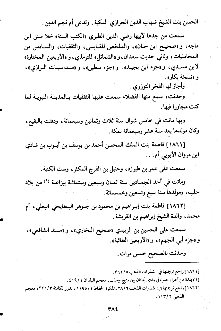 1862- راجع ترجمتها في شذرات الذهب 6/28, تذكرة الحفاظ 4/1495, الدرر الكامنة 3/220, معجم الذهبي 2/103.
