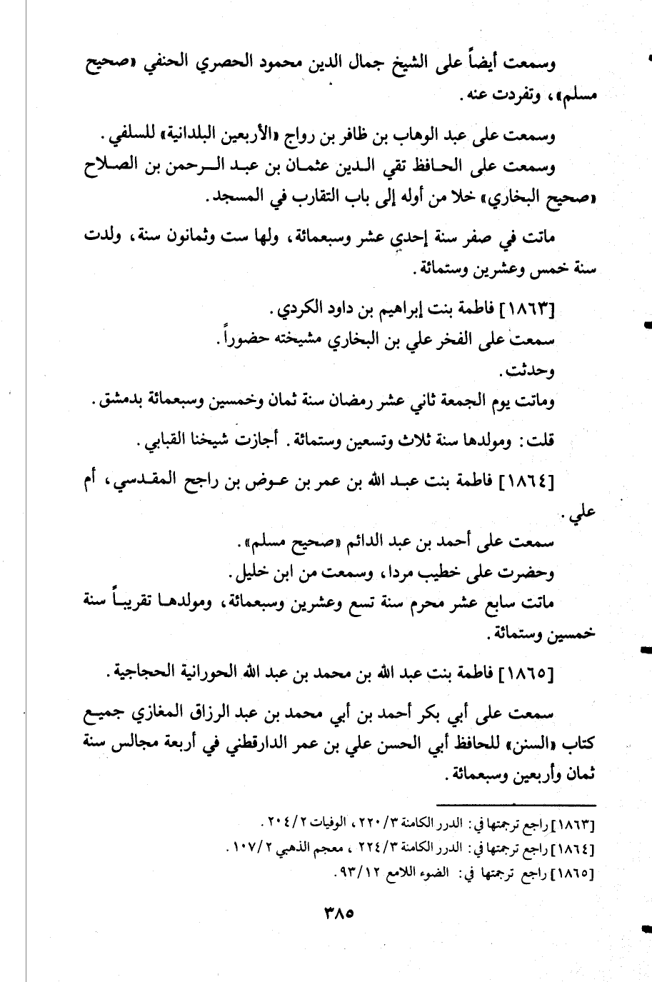 1865- فاطمة بنت عبد الله بن محمد بن عبد الله الحورانية الحجاجية.