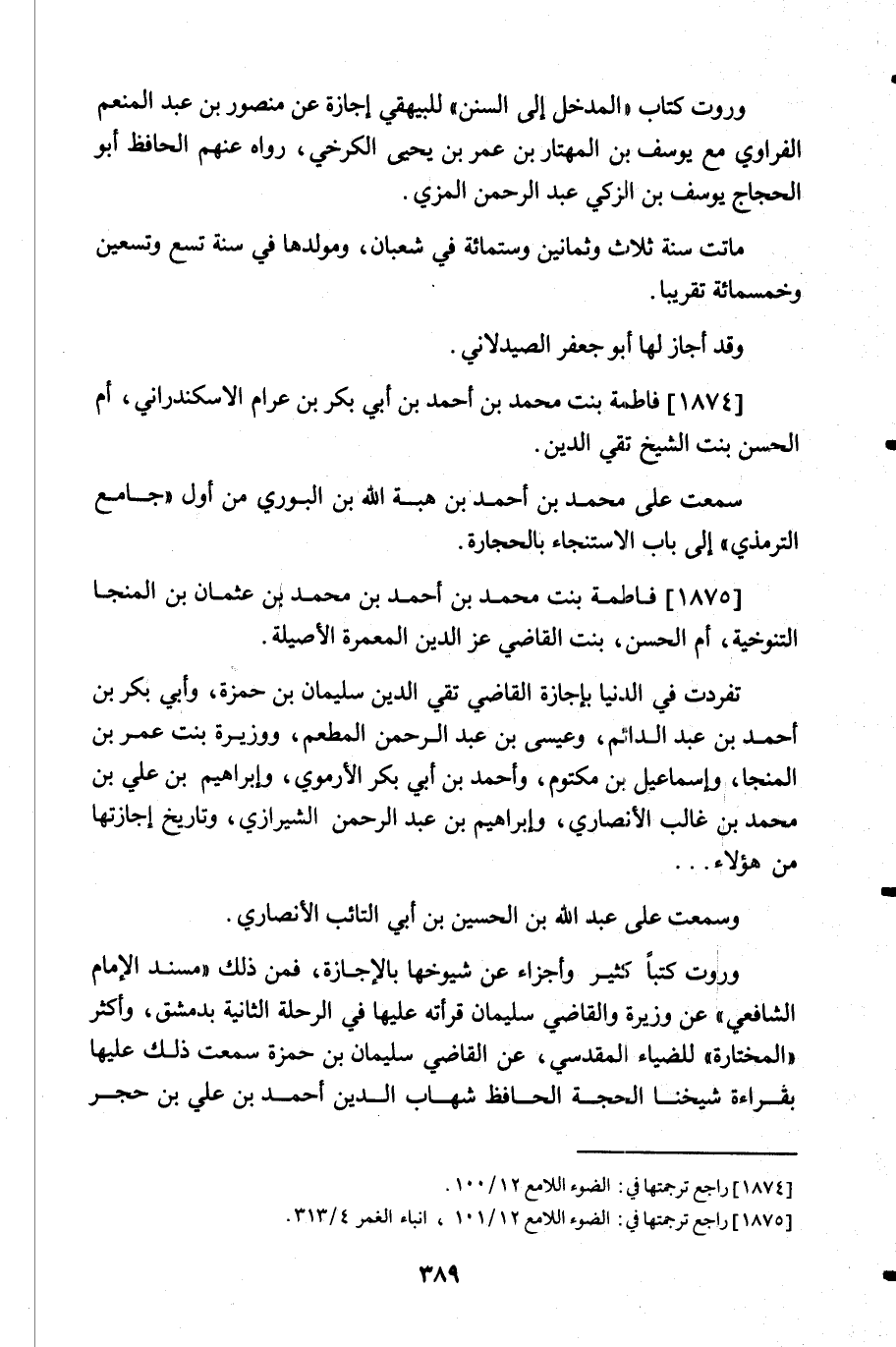 1874- فاطمة بنت محمد بن أحمد بن أبي بكر بن عرام الاسكندراني أم الحسن بنت الشيخ تقي الدين. سمعت على محمد بن أحمد بن هبة الله بن البوري من أول "جامع الترمذي" إلى باب الاستنجاء بالحجارة.