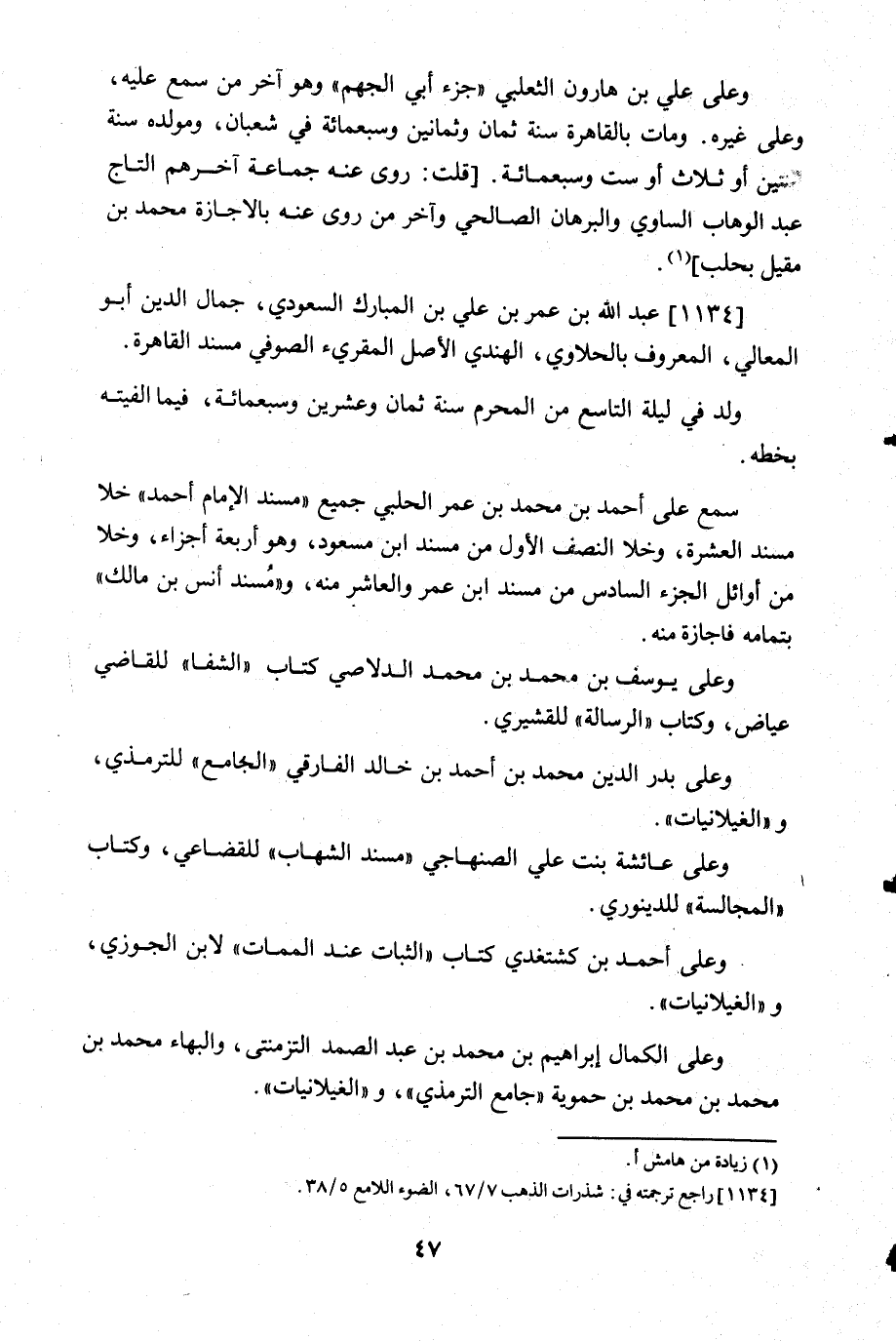1134- عبد الله بن عمر بن علي بن المبارك السعودي جمال الدين أبو المعالي المعروف بالحلاوي الهندي الأصل المقرىء الصوفي مسند القاهرة.
