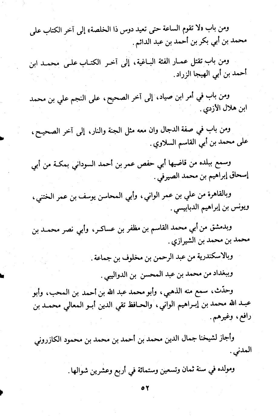 ومن باب لا تقوم الساعة حتى تعيد دوس ذا الخلصة إلى آخر الكتاب على محمد بن أبي بكر بن أحمد بن عبد الدائم.