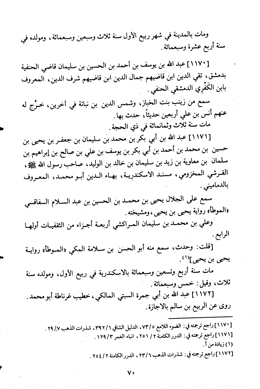 1170- عبد الله بن يوسف بن أحمد بن الحسين بن سليمان قاضي الحنفية بدمشق تقي الدين ابن قاضيهم جمال الدين ابن قاضيهم شرف الدين المعروف بابن الكفري الدمشقي الحنفي.