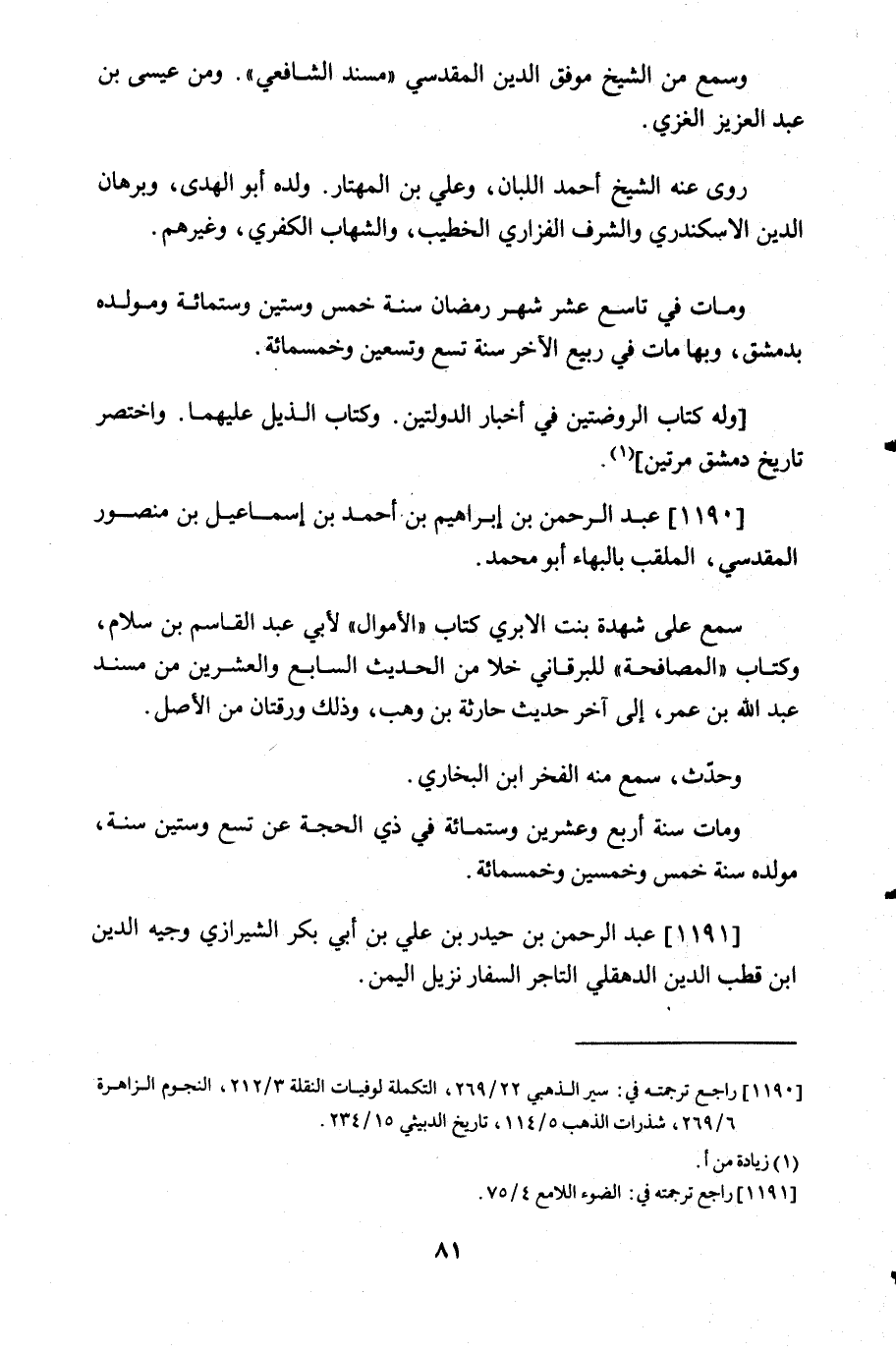 1190- راجع ترجمته في: سير الذهبي 22/269, التكملة لوفيات النقلة 3/212, النجوم الزاهرة 6/269, شذرات الذهب 5/114, تاريخ الدبيثي 15/234.