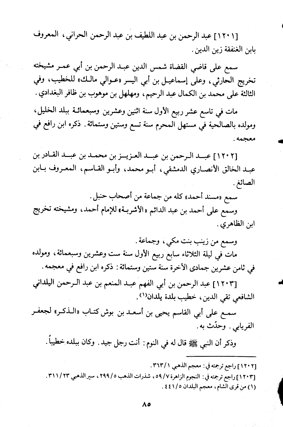 1201- عبد الرحمن بن عبد اللطيف بن عبد الرحمن الحراني المعروف بابن الغنفقة زين الدين.